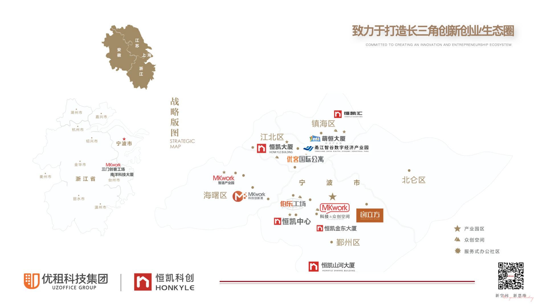 宁波恒凯科创股份有限公司隶属于优租科技集团有限公司,是一家致力于打造产业园区、特色楼宇、科技孵化器、服务式办公社区、酒店、青年公寓、商业街区等产业运营服务商。恒凯科创深耕楼宇行业数十年,累计服务中小微企业达1万家。从开创服务式办公租赁新模式到打造数字智慧园区新形态,始终以创新为驱动力,带领优租O2O平台打造最具活力的数字化生态圈,通过一步步创新变革为区域产业赋能,助推地方经济高质量发展。先后荣获:国家高新技术企业、浙江省数字化示范小微园、浙江省级众创空间、宁波市三星级小微企业园、宁波市专精特新中小企业、宁波市中小企业公共服务示范平台、宁波市科技企业孵化器、宁波市信用管理示范企业、鄞州区优秀楼宇服务企业、鄞州区三星级商务楼宇、鄞州区文化产业园区等荣誉。我们的愿景:为区域产业赋能,使命:让创业更轻松。